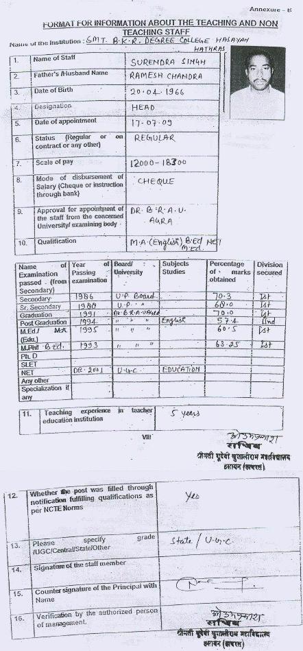 Resumes of Surendra Singh
